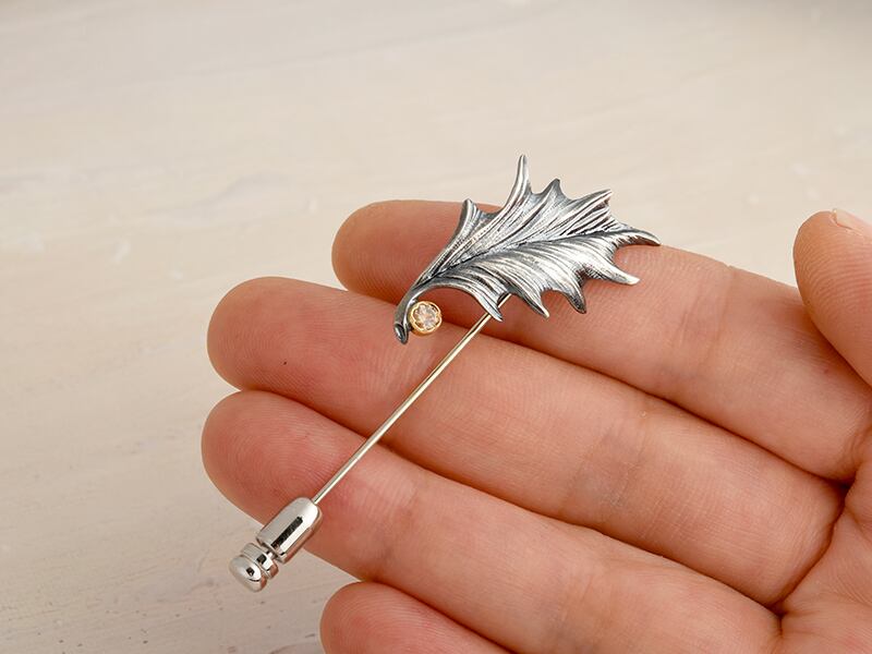 葉の根本に、優しくきらめくブラウンダイヤモンドを留めました。