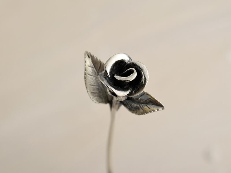 ぽってりとした愛らしい花びらと、フチのギザギザまで再現した葉っぱがポイントです。