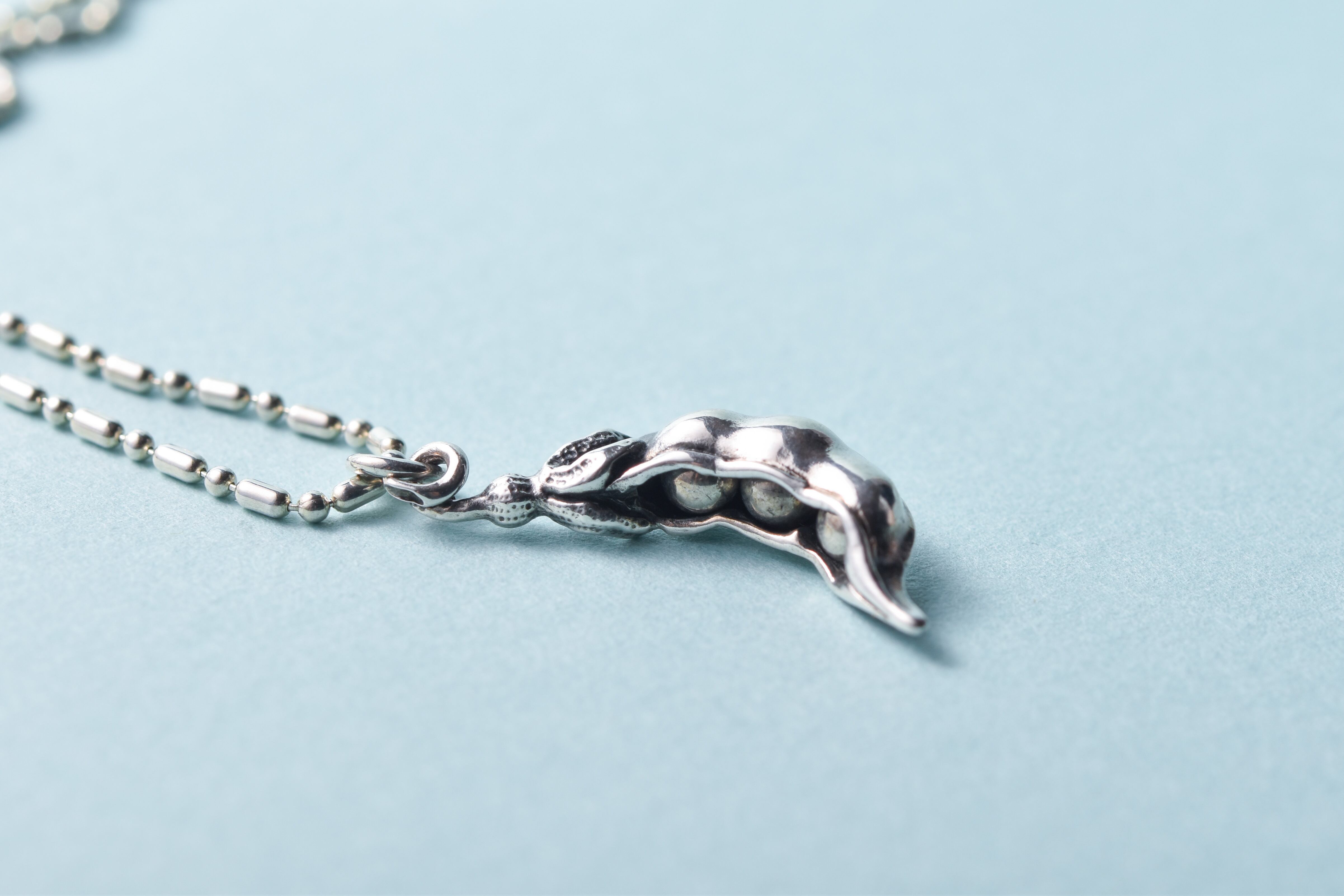 まるまる太った銀の豆が3粒、銀のサヤに入っています。