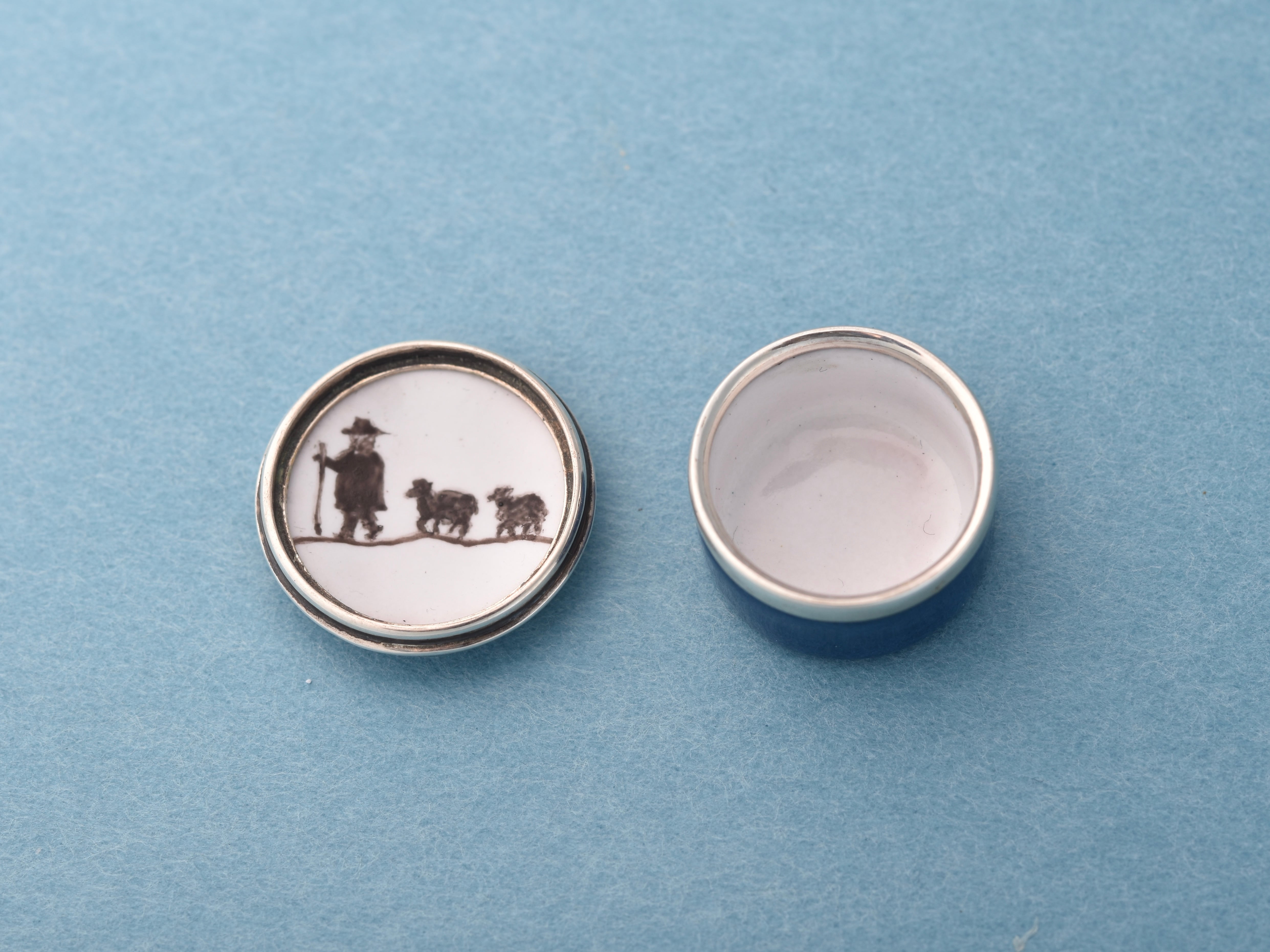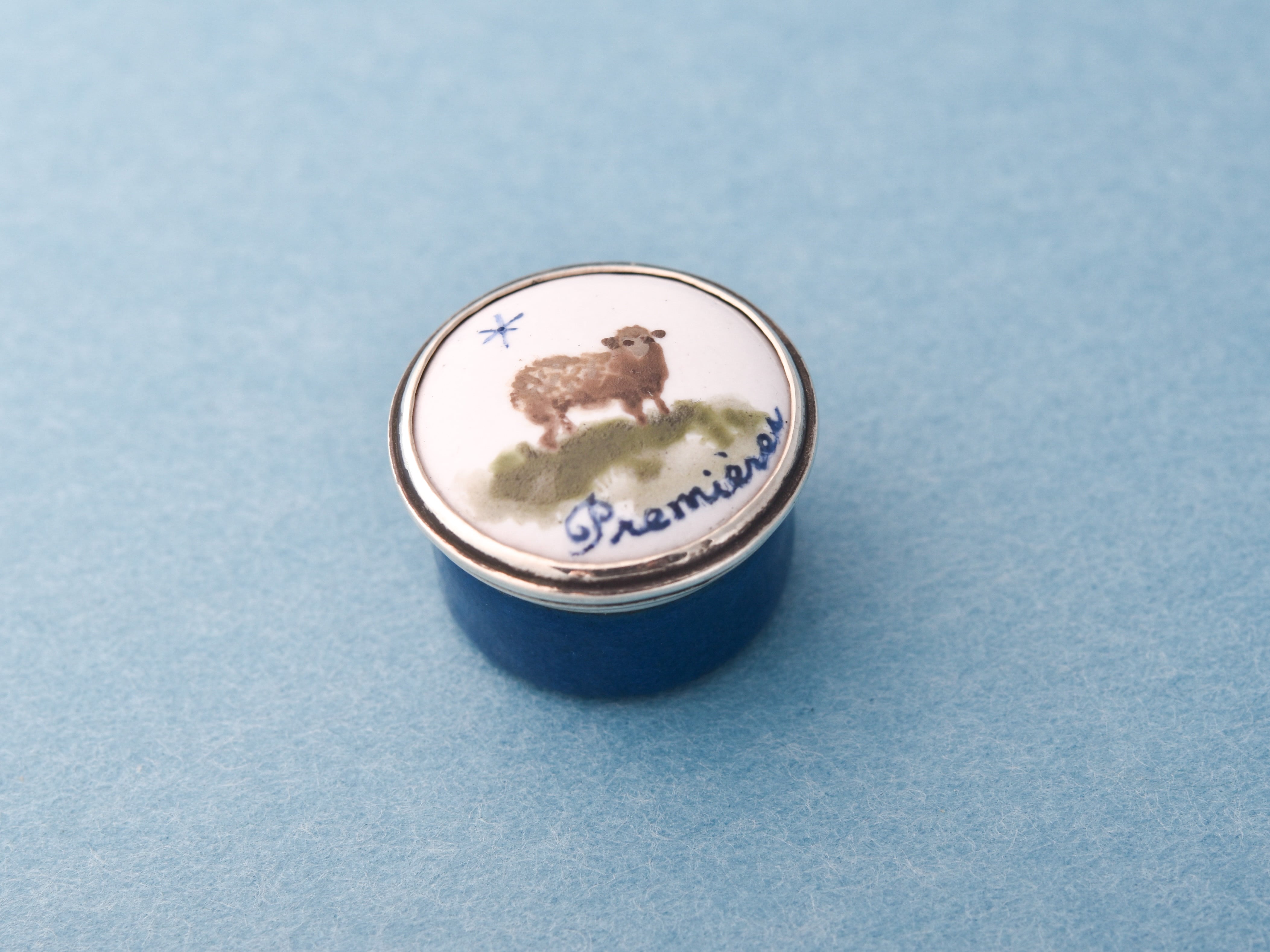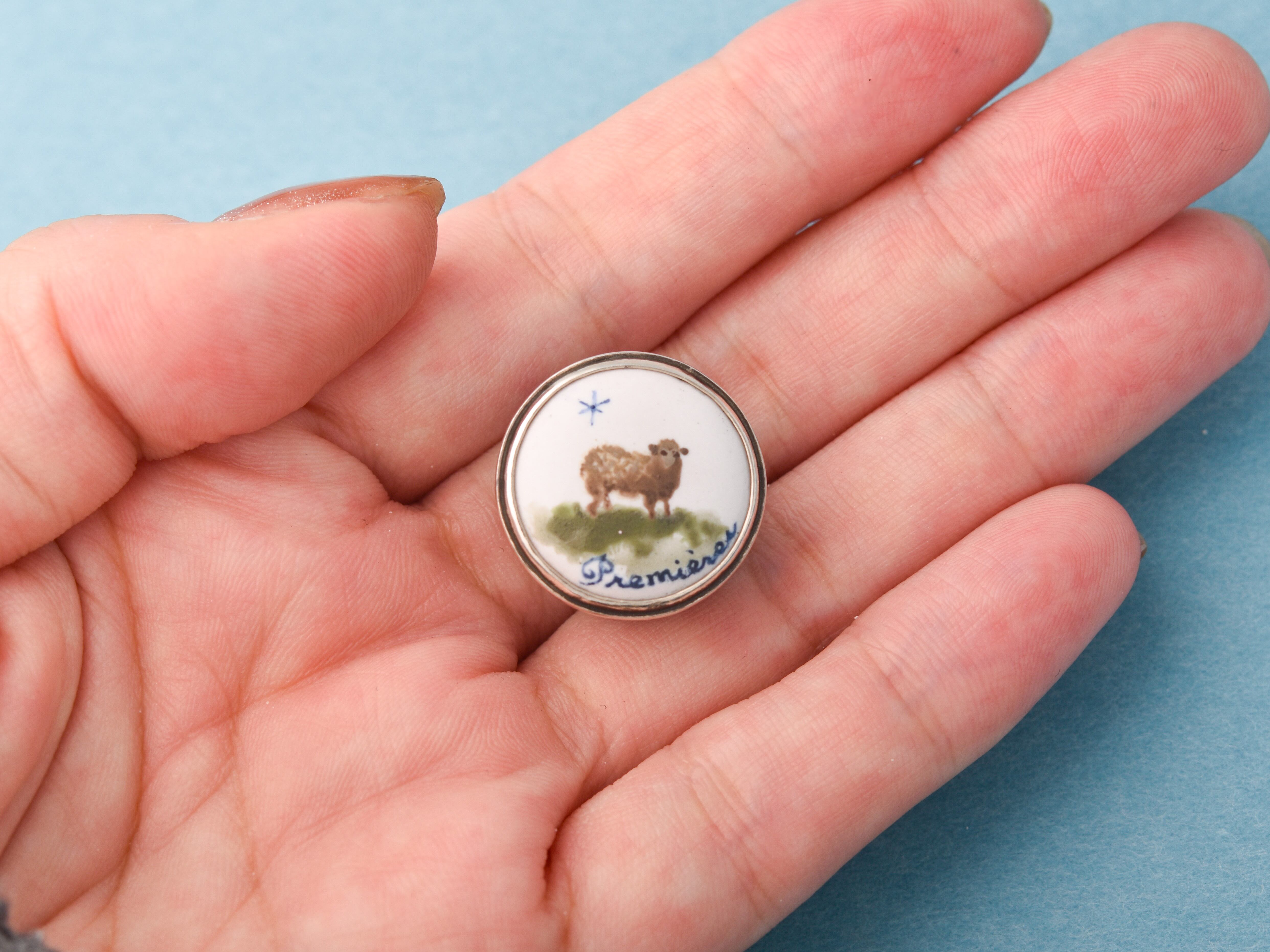 シルバーと銅にエナメル彩色を施し、羊と一番星を手描きで表現し焼き付けました。