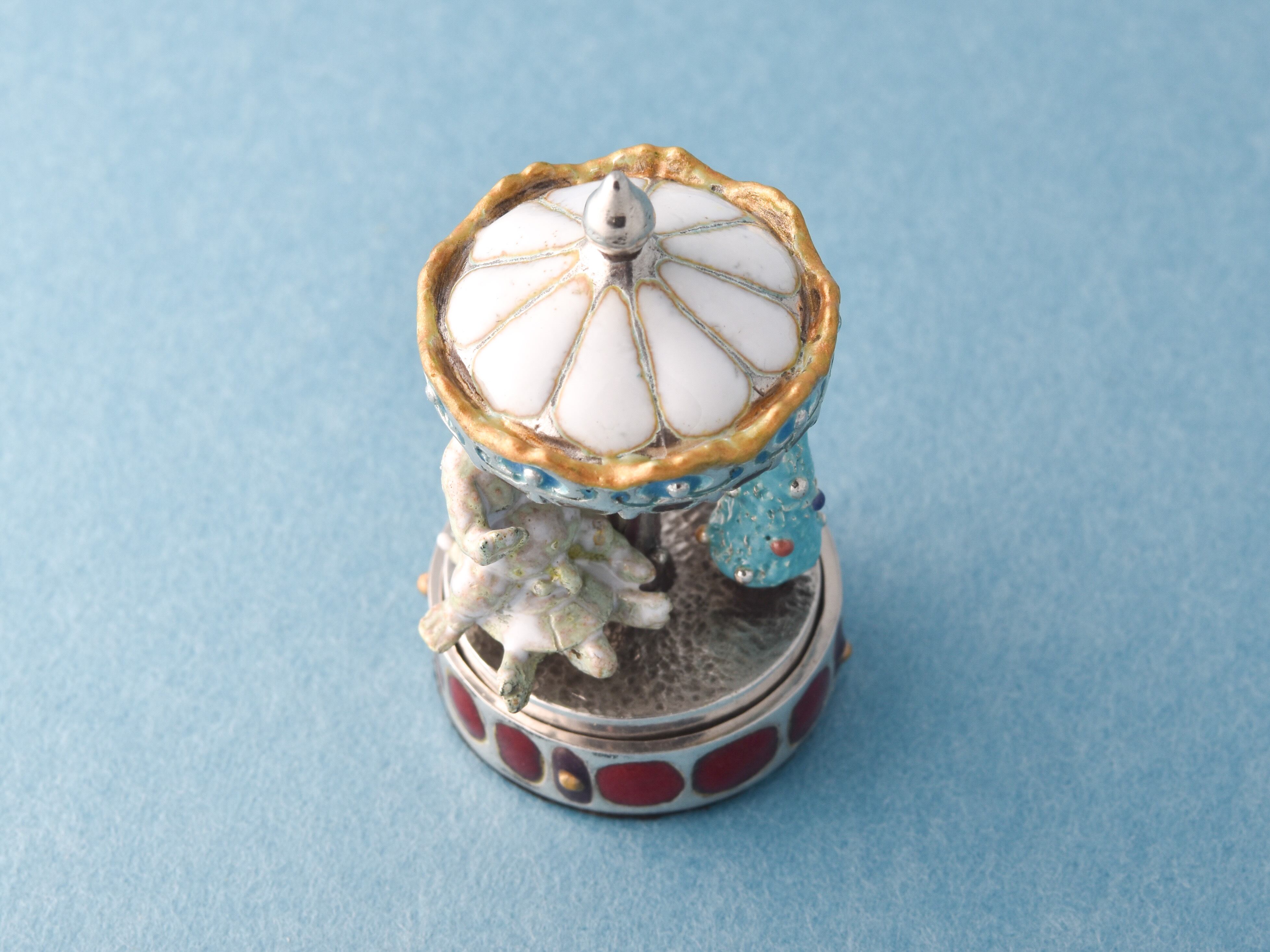 指で回転させると、馬と亀に乗った像とツリーが上下に動く!